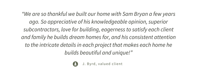 Whether you dream of a grand southern-style estate, one designed with classic European architecture, or a craftsman-style cottage, the professionals of Built by Bryan are here to turn your vision into a breathtaking reality. Our expert team can build a custom, luxury home your family is sure to cherish for a lifetime.